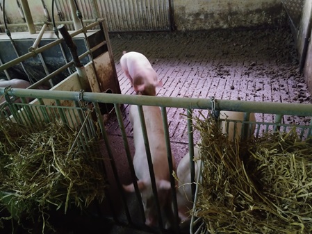 Auf dem Bild sind Schweine, die morgen abgeholt werden. Sie haben von mir noch Rotkohl als Snack bekommen.