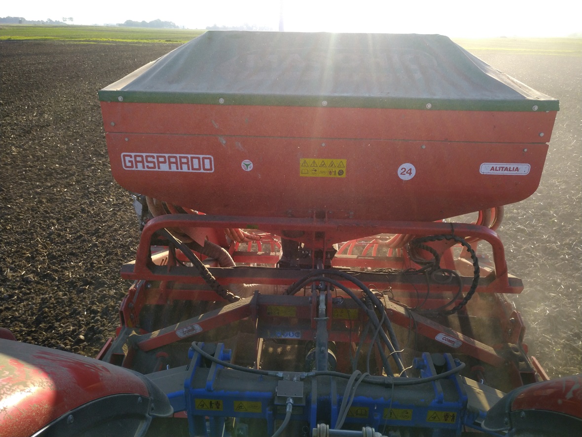 Heute habe ich angefangen Gerste zu drillen. Das machen wir dieses Jahr pfluglos mit einem Tiefenlockerer. Vorher gabe es eine Totalherbizidbehandlung.