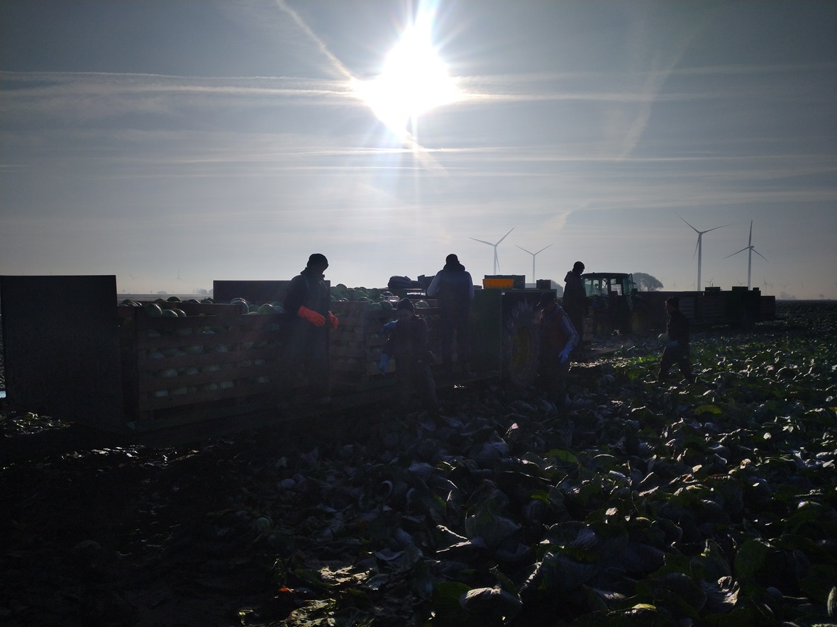 Am Montag hat bei uns auf dem Betrieb die Kohlernte begonnen. Mit den Erträgen und der Qualität sind wir bisher zufrieden. Bei der Ernte helfen uns sieben polnische Erntehelfer. Der Kohl wird dann bei Temperaturen kurz über dem Gefrierpunkt eingelagert.