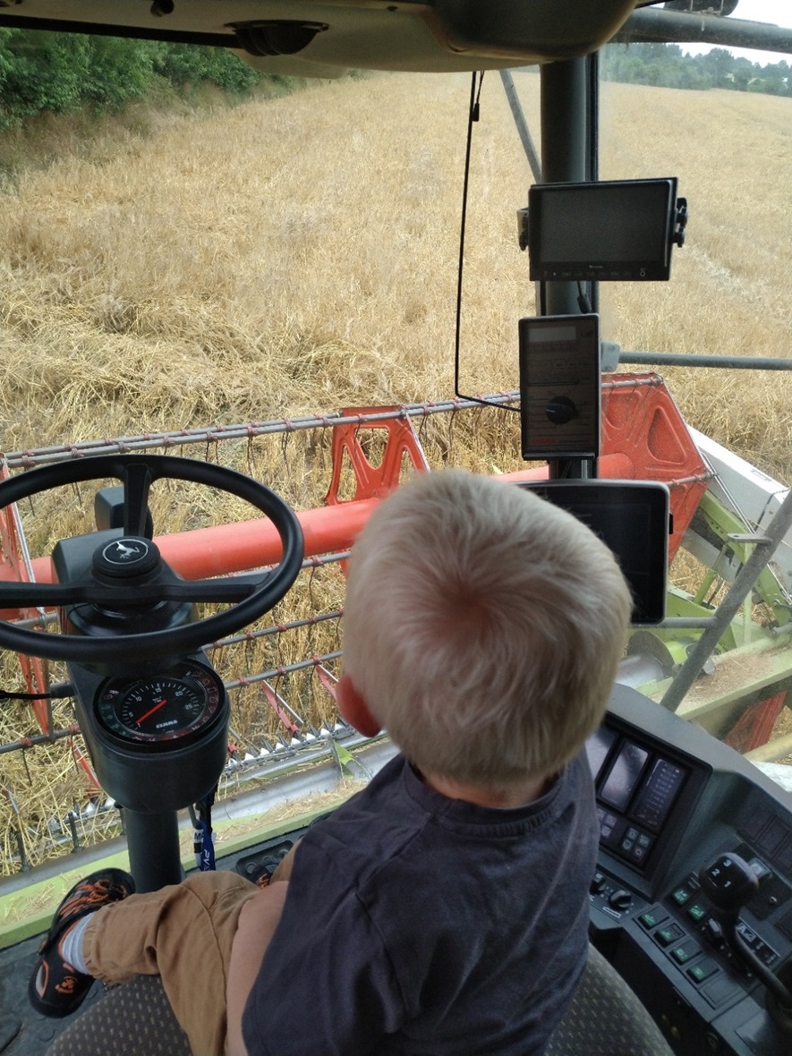 Wir sind fast fertig. Wintergerste, Sommergerste, Raps und Winterweizen sind ab. Auch Roggen haben wir dieses Jahr gedroschen. Nun fehlt noch der Sommerweizen und die Ackerbohnen. Also noch ca. drei Tage arbeiten, dann können wir den Mähdrescher wieder einmotten.